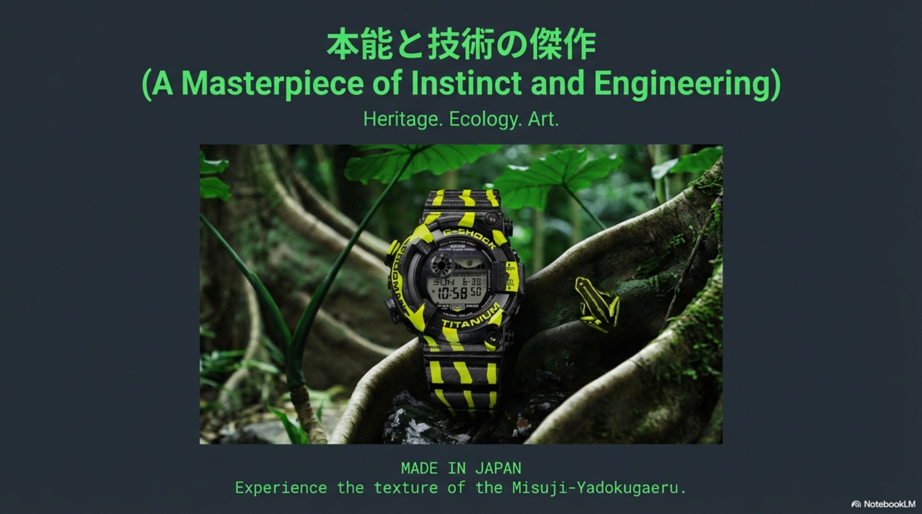 新作「GW-8200TPF-1JR」。税込価格94,600円という設定は、単なるデジタルウオッチではなく、高度な素材工学と意匠が融合した「現代の工芸品」であることを物語っています。南米アマゾンの熱帯雨林に潜む「ミスジヤドクガエル」をモチーフにしたこの野心作は、なぜ今、我々の所有欲をこれほどまでに激しく揺さぶるのか。ジャーナリスティックな視点から、その5つの核心に迫ります。