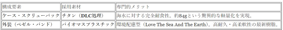 この時計の「強さ」を支えるのは、妥協なき素材選定です。主要な構成要素を分析すると、94,600円という価値の正当性が浮き彫りになります。