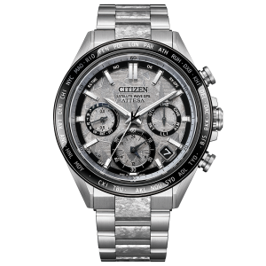 シチズン独自の技術で生まれた「結晶チタニウム」に、デュラテクトプラチナをコーティングした中駒を採用。高温の熱処理によって生まれる結晶模様は、二つとして同じものがなく、見る角度によって輝きの表情を変えながら、唯一無二の存在感を腕元に宿します。
