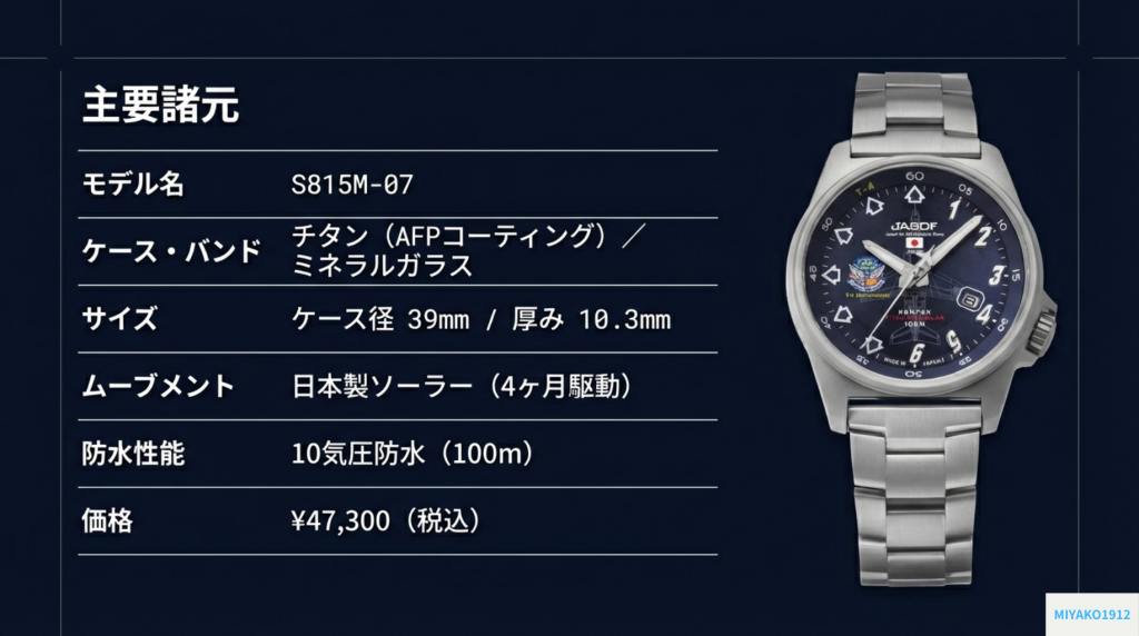 S815Mシリーズの中でも、限定モデル「ブルーインパルス T-4 30周年記念モデル (S815M-07)」には、航空ファン、特に「ブルーインパルス」のファンなら思わず笑みがこぼれるような、遊び心と敬意に満ちた暗号が隠されている。