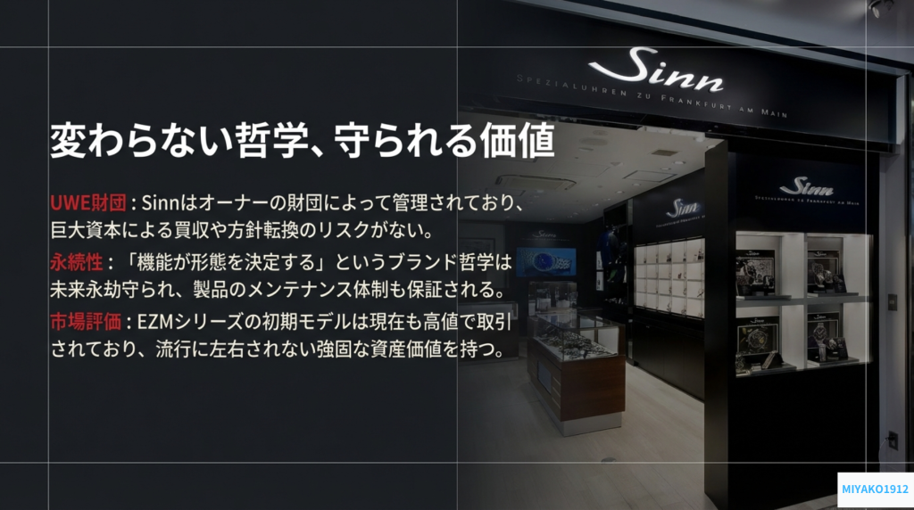 製品のスペックを超え、この時計が持つ最もユニークな価値は、そのブランドの永続性にある。多くの独立時計ブランドが巨大なラグジュアリーコングロマリットに買収され、その個性を失っていく中で、ジンは異色の道を歩む。