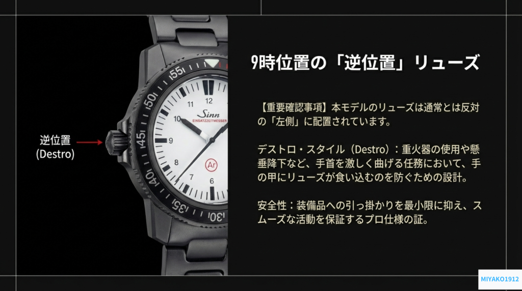 これから解説するSinn EZM 3 S Wは、その妥協なき哲学を色濃く受け継ぎ、日本ではわずか100本しか存在しない限定モデルである。一見すると奇妙で、不便にさえ見えるその特徴は、実はすべて、任務遂行という唯一の目的のために導き出された、冷徹な機能主義の結晶なのだ。