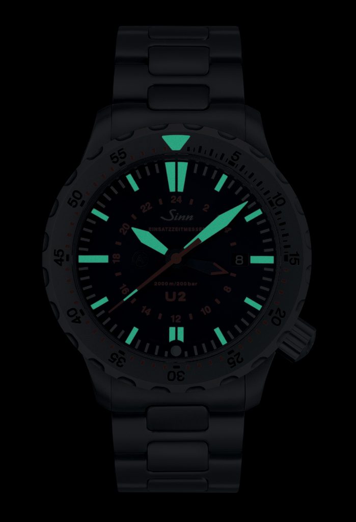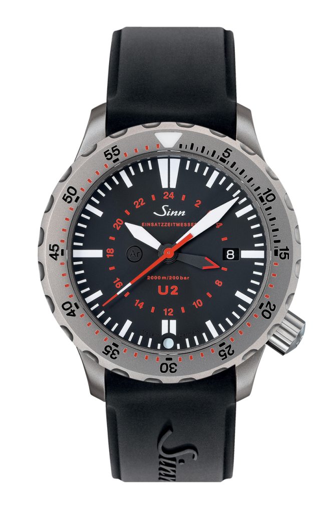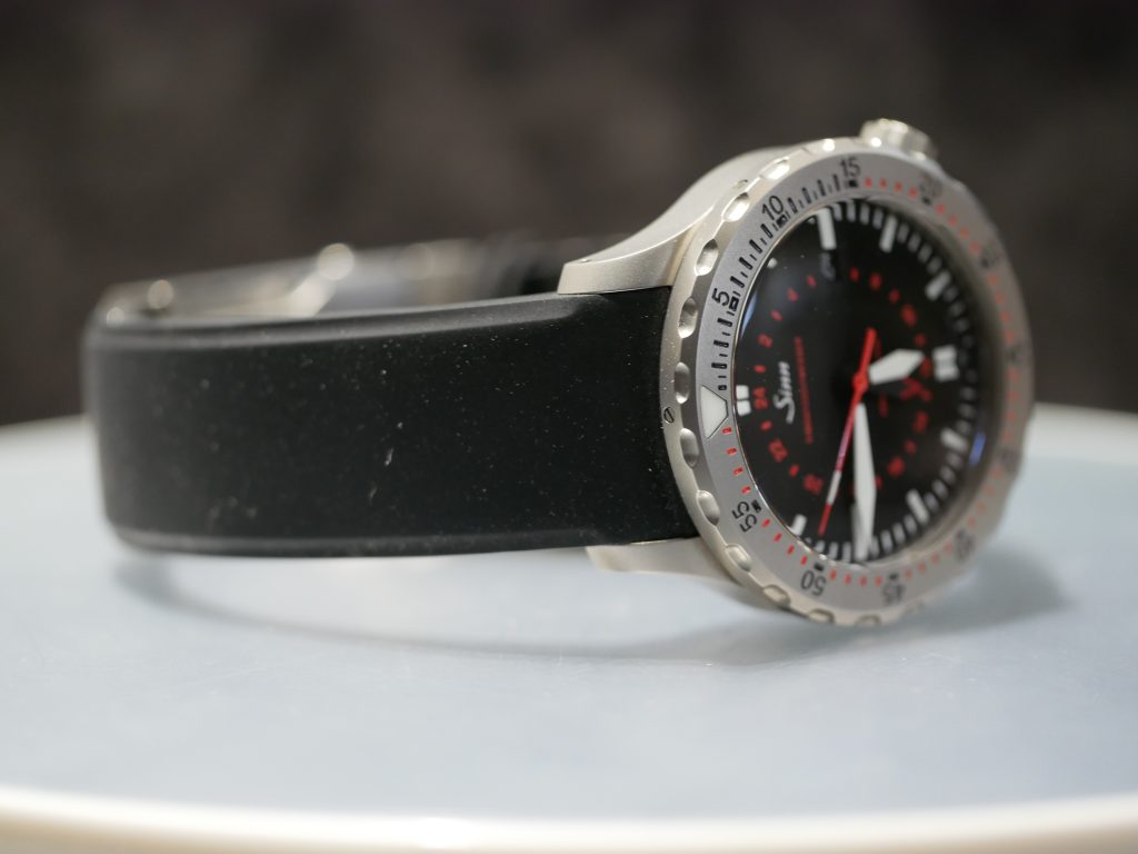 U2は、第2時間帯を表示するGMT機能を搭載しています。ダイヤルに配された赤い24時間針と目盛りは、デザイン上のアクセントとして非常に印象的ですが、その本当の目的は別の場所にあります。それは、Sinnの「Einsatzzeitmesser(出撃用計測器)」という哲学に深く根差した、驚くほど思慮深い機能設計です。