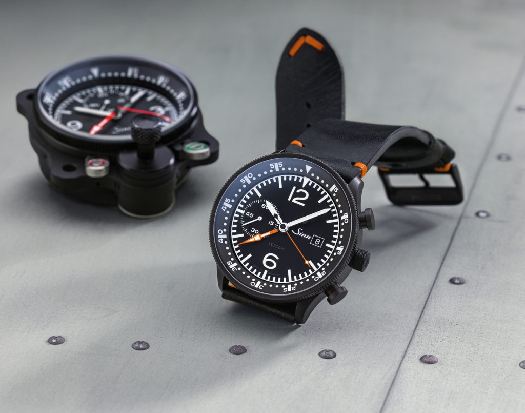 モデル717は、腕時計というよりも「腕に装着するコックピット計器」と呼ぶのがふさわしいでしょう。その直接の祖先は、1970年代にドイツ空軍の戦闘機「トーネード」計画のためにジンが開発した、本物のコックピットクロック「Nabo 17 ZM」です。「Nabo」はドイツ語の「Navigation Borduhr」(機上ナビゲーションクロック)、「ZM」は「Zentralminute」(中央分計)を意味します。717は、この歴史的な軍用計器の設計思想と機能を、腕時計というフォーマットに忠実に翻訳したモデルなのです。