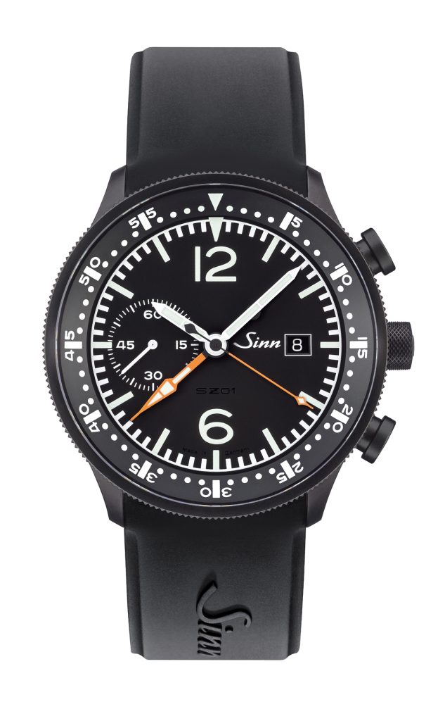 この時計の最も重要な特徴は、クロノグラフの分針が一般的な小さなサブダイヤルではなく、文字盤の中央に配置されている「センターミニッツカウンター」です。これは単なるデザイン上の選択ではありませんでした。当時のドイツ連邦国防技術調達庁(BWB)が数あるメーカーの中からジンを選定した理由は、ジンがこの機能を提供できる唯一のメーカーだったからです。高いGや激しい振動にさらされる高ストレス下のパイロットにとって、小さなサブダイヤルを読み取ることは認知的な負担となり、致命的な誤読につながるリスクがありました。経過時間を示す秒針と分針を、共に中央に大きく配置することで、パイロットは一瞥するだけで瞬時に、かつ直感的に時間を把握できる。この人間工学に基づいた解決策こそが、BWBがジンを選んだ核心であり、「機能がフォルムを決定する」という哲学の完璧な体現なのです。