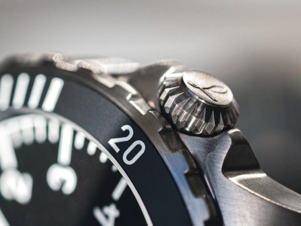 また、リューズを4時位置に配置した設計も、20気圧の防水性を物理的に確保するための「ねじ込み式構造」と、手首を曲げた際の干渉を防ぐ人間工学(リストバイト防止)の巧みな融合です。プロフェッショナルな計器としての機能美が、細部にまで宿っています。