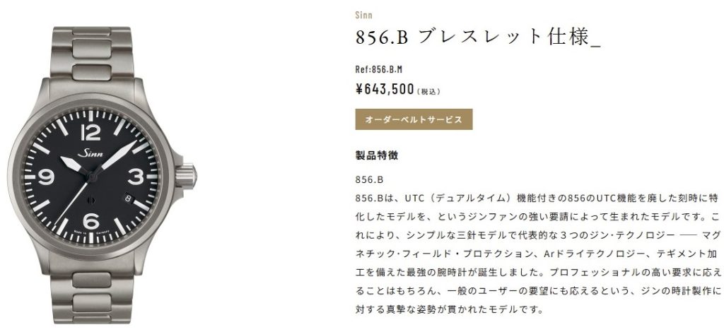 【公式サイト】Sinn 856.B ブレスレット仕様_¥643,500 (税込)