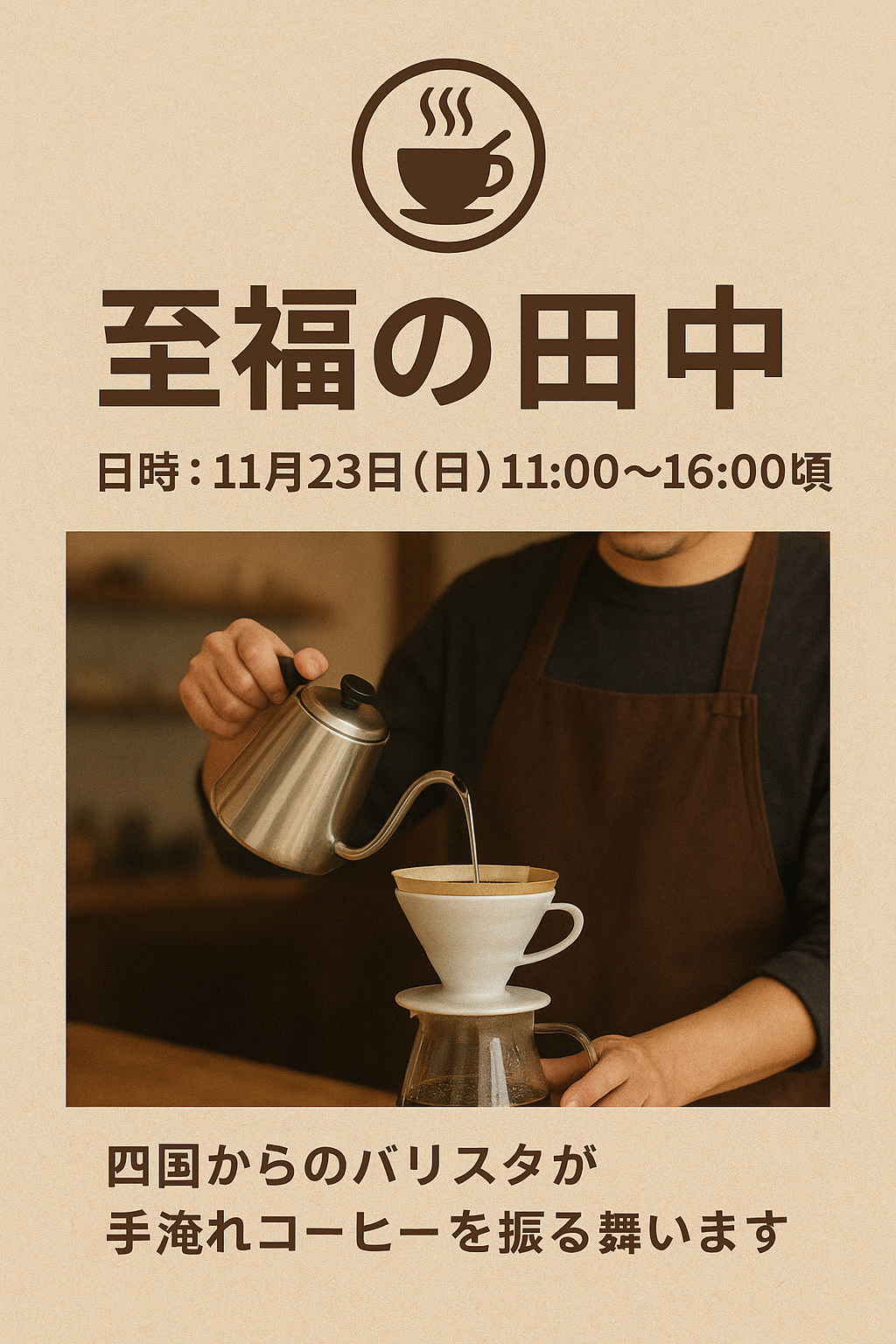 【11/23(日)限定】四国の名バリスタ「田中氏」によるハンドドリップコーヒーサービス