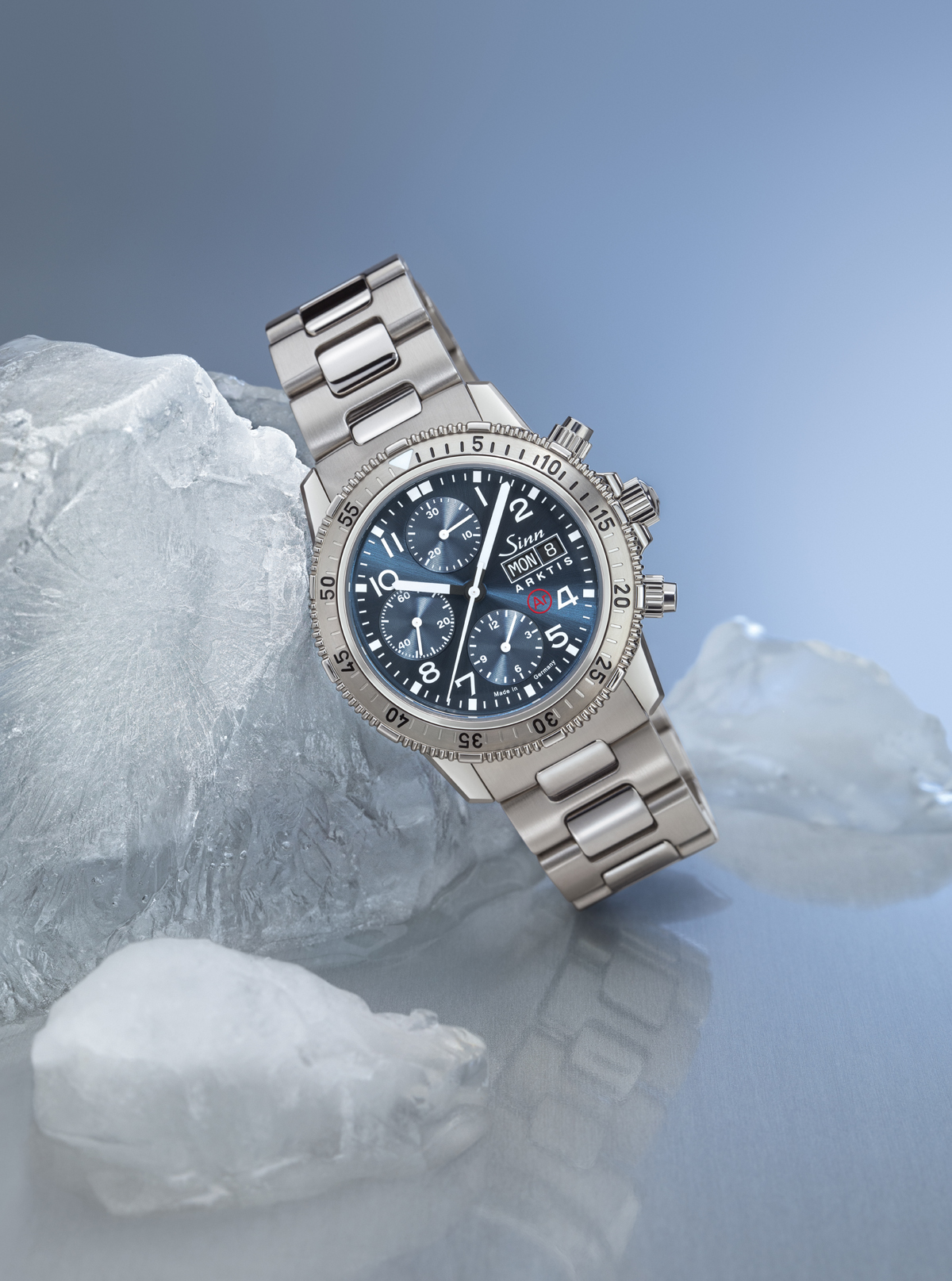 206.ARKTIS.IIの真価を理解するためには、その歴史的背景を紐解く必要があります。このモデルの物語は、20世紀の終わり、1999年にまで遡ります 。この年、ジンは時計業界に衝撃を与えるモデル、203.ARKTISを発表しました。これは、北極海での極限潜水という特殊な目的のために開発された、画期的なダイビングクロノグラフでした。その最大の特徴は、ジンが開発した特殊オイル66-228を初めてダイバーズクロノグラフに採用し、温度抵抗テクノロジーを搭載した点にあります 。この技術革新により、から$+80^{\circ}C$という驚異的な温度範囲での機能的信頼性が保証され、機械式時計の常識を覆したのです 。