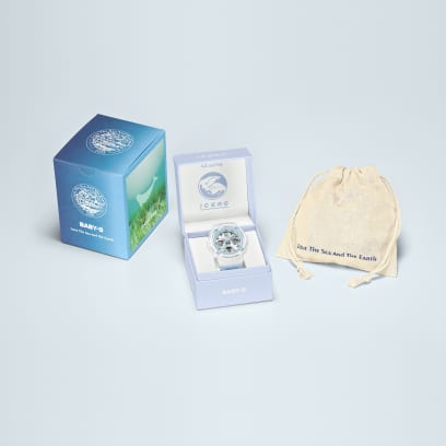 バンドには「ICERC Japan」のロゴをプリントし、裏蓋には「Love The Sea And The Earth」のシンボルマークを刻印。また、ベゼル、バンドの主な樹脂パーツにはバイオマスプラスチックを使用しています。