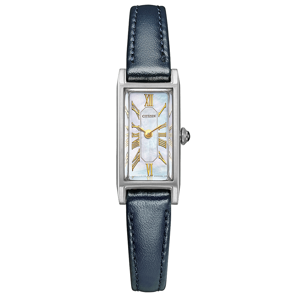 スリムな形状が人気のスクエアケースに、美しい白蝶貝文字板を合わせた限定モデル。文字板中央にギョーシェ彫りを思わせるパターンを施し、高級感と華やかさをきわだたせました。