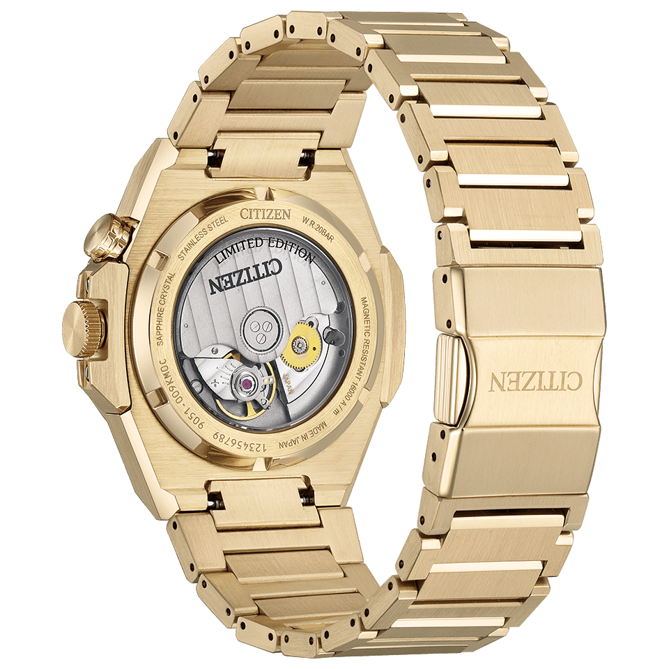“華やぐ都市の夜のきらめき”をイメージ。明るいライトゴールドのケースとバンド、幾何学的パターンをあしらった文字板が、無数に輝くビルの灯りを表現しています。都会の二面性を表現した、シンプルながらも存在感あふれる限定モデルです。