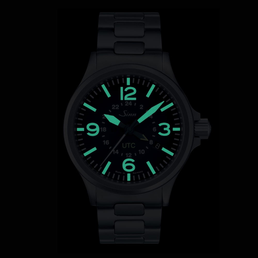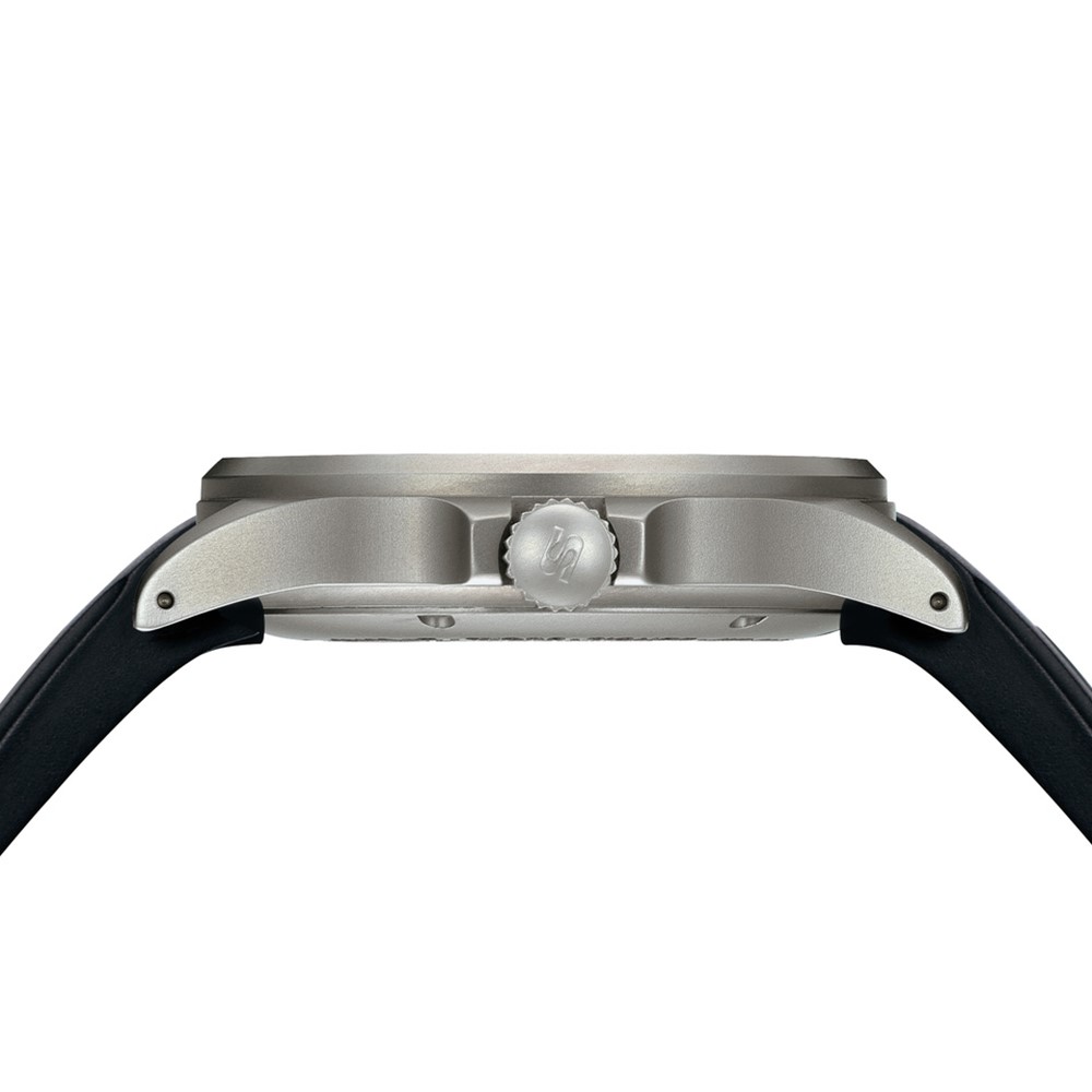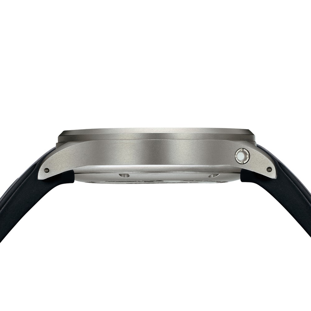 コックピット内のパイロットにとって最も重要な、極限状態でも瞬時の視認性を高めるため3・6・9・12のインデックスを強調した文字盤に、UTC(デュアルタイム)機能を付加しています。テギメント加工されたステンレスケースを使用することで、セラミックと同等の高硬度を実現した耐傷性能を持つハイスペックモデルです。