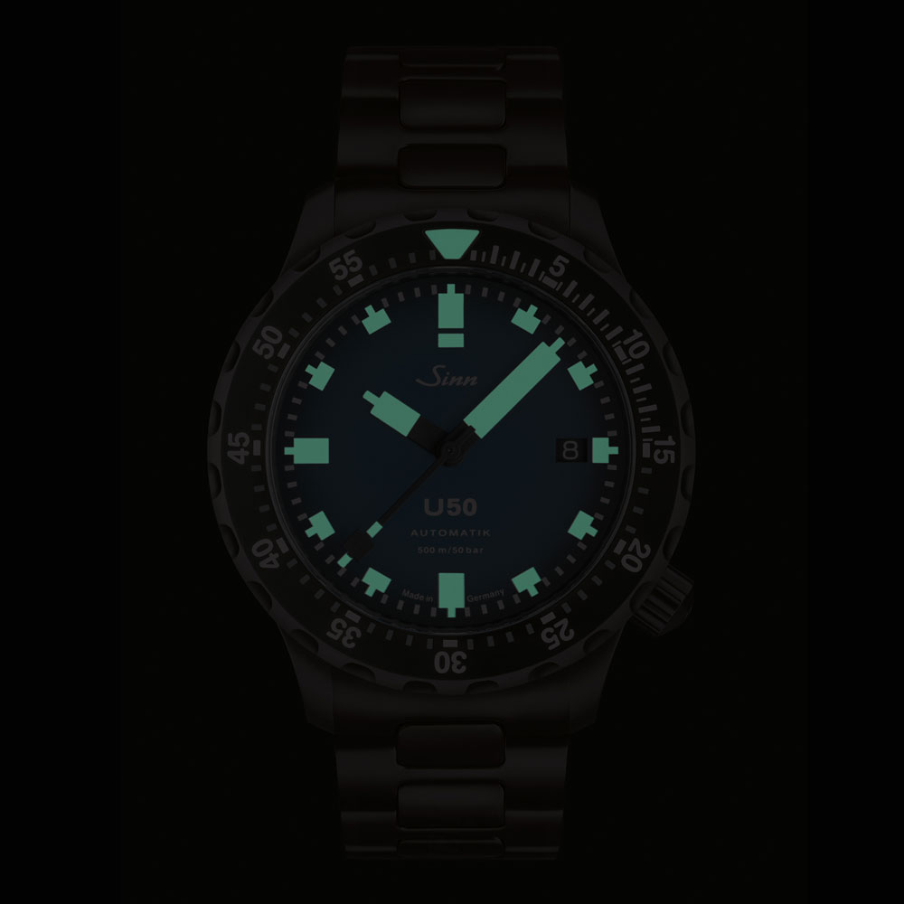 U50.S.BSは、テギメント・テクノロジーにより硬化されたブラックケースにブルーとブラックのグラデーションダイヤルを組み合わせた500本の限定モデルです。堅牢で正確なこの時計は、プロフェッショナル・ダイバーが求める最高の信頼性と高い視認性を兼ね備えています。