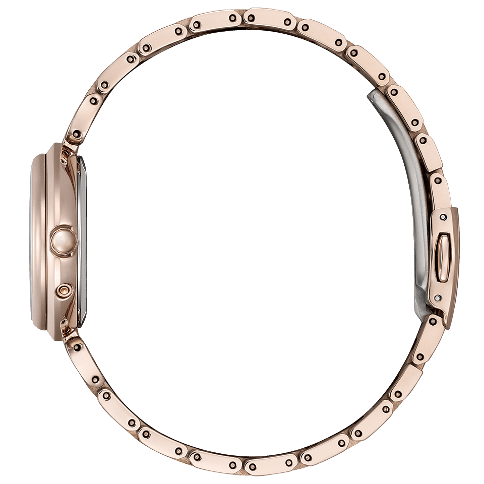 放射状の成形パターンに、柔らかく重なるインクジェットのグラデーションを組み合わせ、光が広がっていく瞬間を丁寧に表現。文字板には、ゴールドパールとゴールドプリント、多色のインクジェットプリントを重ね、奥行き感のある幻想的な仕上がりに。インデックスは、放射状に広がる光をイメージしたカットパーツを採用し、12時の位置で輝く1ポイントのラボグロウン・ダイヤモンドが上品で華やかな輝きを添えます。